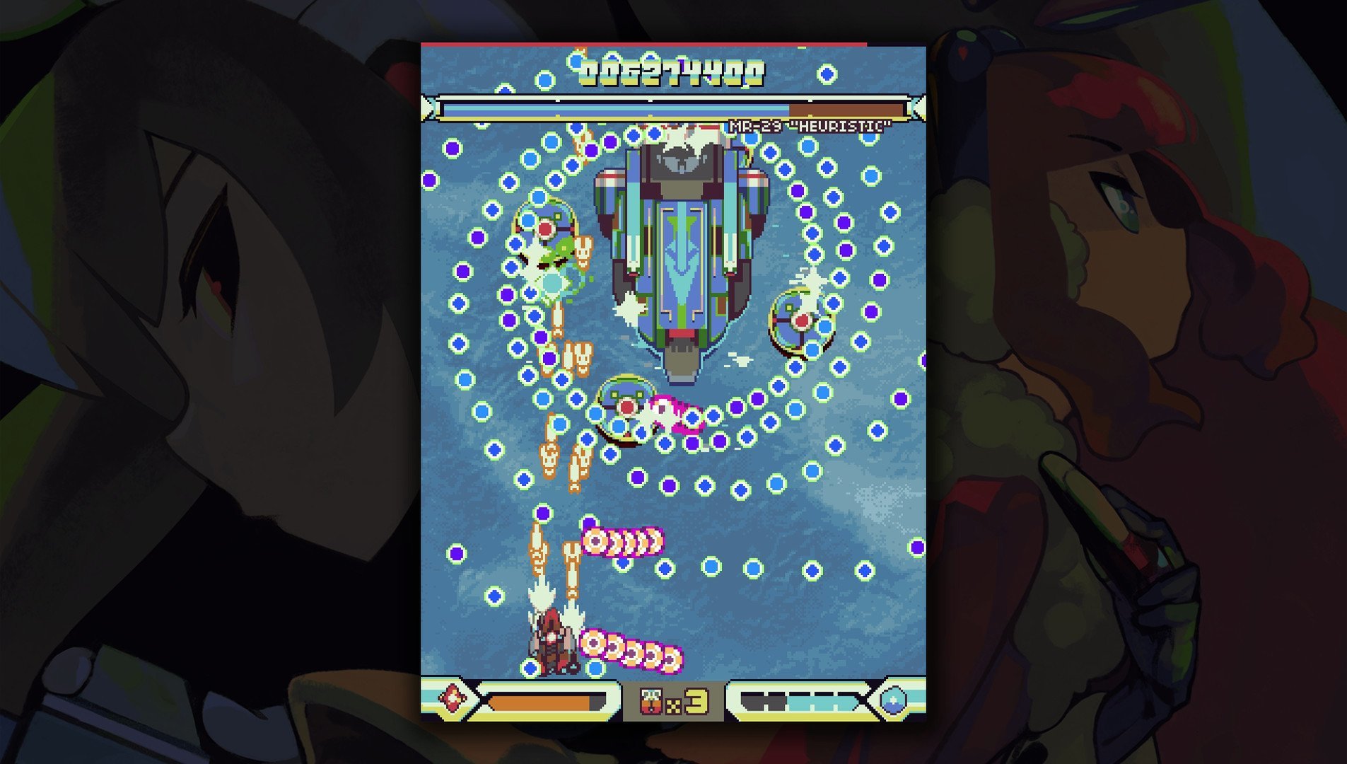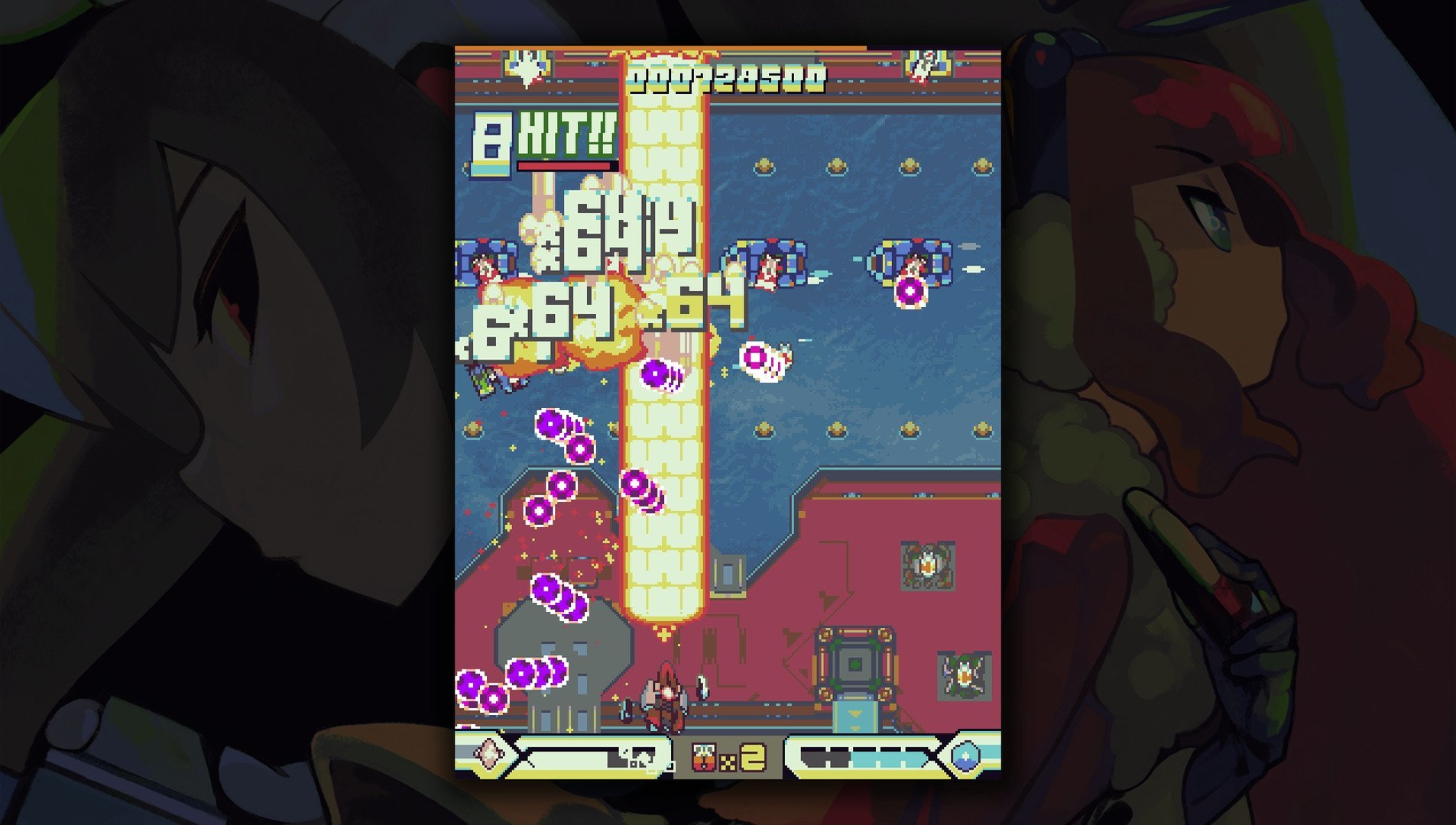 - Два пилота с 3 типами оружия у каждого и 8 специальными видами оружия на выбор! Блокировать пули, расчищать толпы, разделывать боссов или доить очки – выбор за вами.