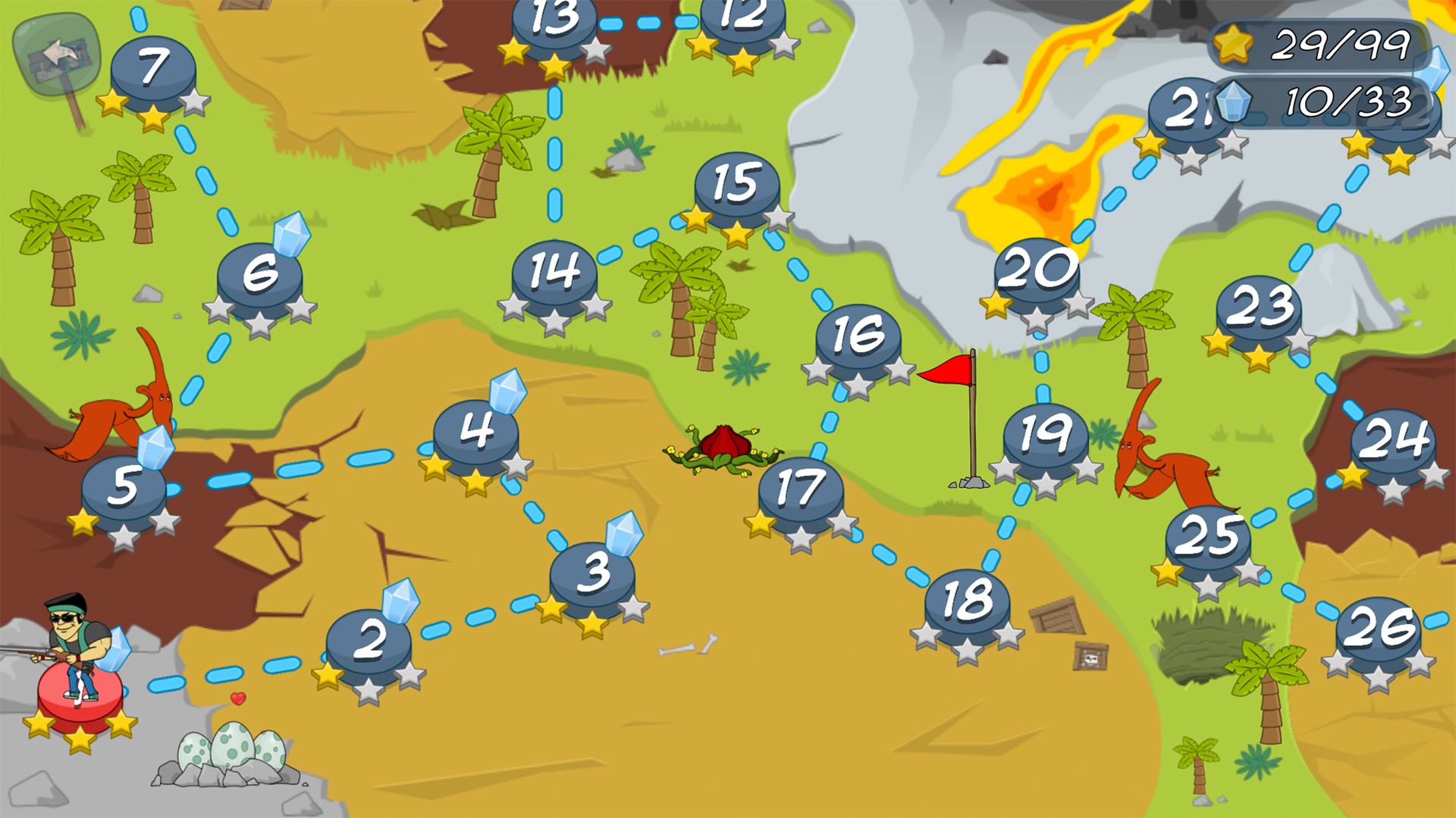 - 34 захватывающих игровых уровня, которые перенесут вас в каменный век