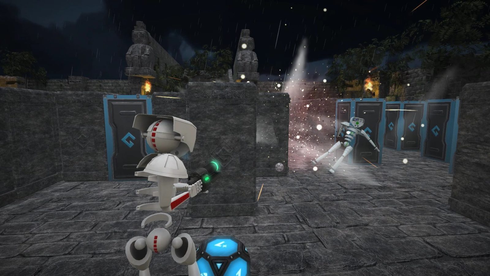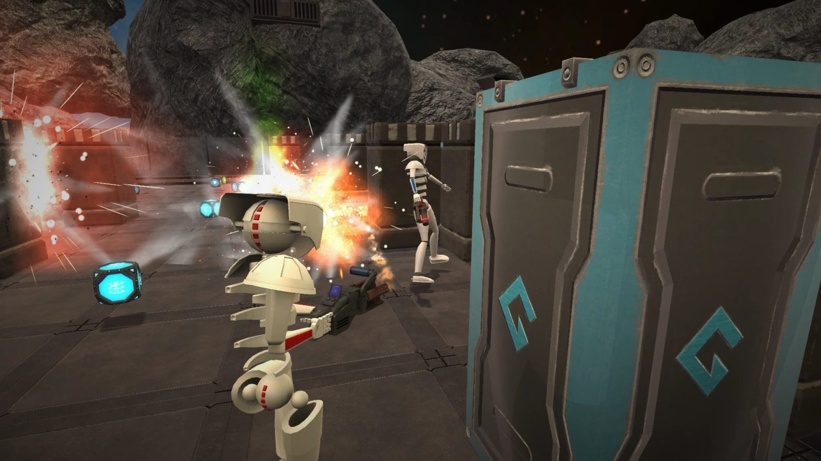 - Уничтожьте арену на основе ящиков, используя липкие гранаты