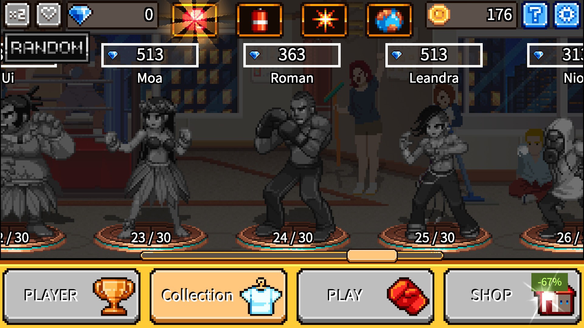 Изощренно прорисованная качественная пиксельная графика, уникальные скины, которыми наполнена игра, пробудят в каждом игроке желание коллекционировать! Комбинируйте различные коллекционные предметы, чтобы найти идеальное сочетание персонажа, мешка с песком и эффекта!