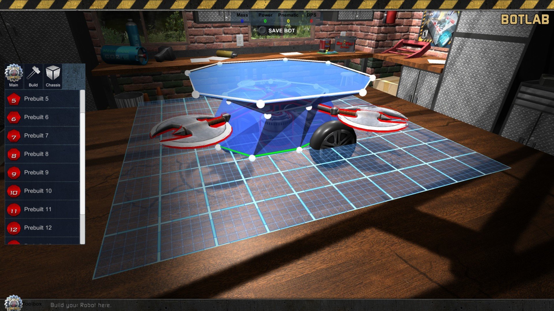 - Создавайте и тестируйте своих роботов в Лаборатории ботов. Выбирайте из широкого спектра компонентов, включая двигатели, поршни, тараны, оружие и многое другое!