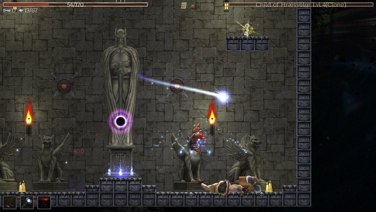 Как агент Одина, вы будете нырять в похожие на пещеры подземелья в поисках сокровищ, спасаться от неожиданных ловушек и участвовать в жестоких битвах на топорах с кровожадными кобольдами. Локи оставил на вашем пути несколько сложных препятствий, но вы найдете специализированное оборудование, надежных друзей и множество секретов, которые помогут вам на этом пути. Если вы продвинетесь достаточно далеко, вы даже научитесь пробиваться сквозь врагов, прыгать со стен и летать, раскачиваясь в воздухе, используя свой надежный крюк для захвата. Достаточно ли вы викинг, чтобы встретиться лицом к лицу с худшими ужасами, которые могут предложить девять миров?